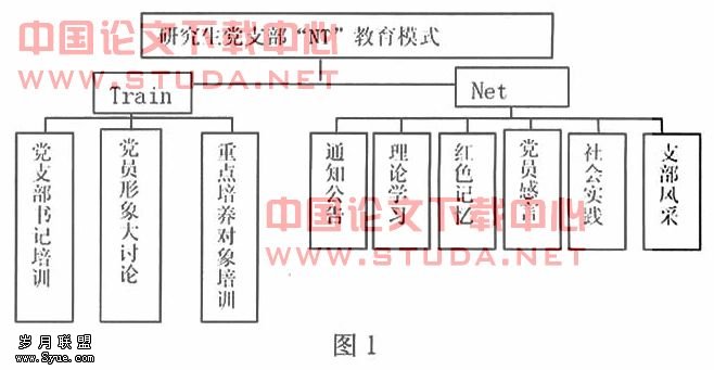 胡锦涛总书记在“十七大”报告中提出了很多意味深长的话:实践永无止境、创新永无止境;坚持解放思想、实事求是、与时俱进、永不僵化。因此高校研究生党建要善于破除迷信,敢于冲破不合时宜观念的束缚,积极把握新特点,大胆探索新路子,突出研究生的主体地位,激发其潜质,进而探究适合研究生特点的工作思路和对策。根据研究生党员的特点,我探索出了研究生党支部“NT”模式:三大培训班(Train)、党员网上课堂(Net)。(具体如图1)
