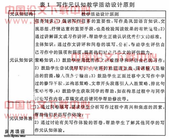 论大学英语写作与元认知教学活动设计原则