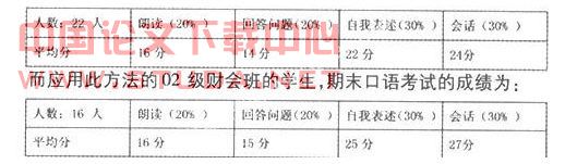 而应用此方法的02 级财会班的学生,期末口语考试的成绩为: