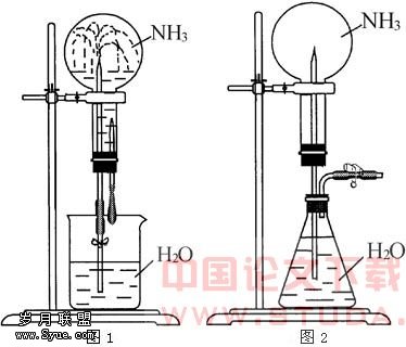 这是我国某中学化学教师的一个教学片段。她首先演示了如图1所示的氨气溶于水的“喷泉实验”。先将胶头滴管中的水挤一点进入烧瓶,烧瓶中就会因为氨气的大量溶解而形成负压,导致烧杯中的水进入烧瓶,形成喷泉。然后教师给出了图2所示的装置,要求学生讨论怎样利用此装置产生喷泉。