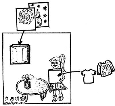 教具不能仅仅是展品,只起到静态和平面的视觉效果,还应尽可能具备动态和立体的效果,如教师发挥创造性制成的flash cards,具有运用简便、灵活、新颖的特点,学生除了能看到听到之外,还有可能去触摸,可以去操作,使英语教学变得生动有趣,也为激发学生学习兴趣创设了更多的有利条件,如在进行PEP教材第四册第四单元有关天气情况及选择穿衣的教学内容时,课堂上是很难将一年四季不同的气候及穿衣状况较真实地展现出来。教师可自制如下教具(图2),使用该教具时,窗外的天气情况可做成下雨、下雪、刮风、多云和晴天等五张插入式卡片,小女孩的上身做成衬衣、夹克衫、毛衣、T恤衫等五张插入式卡片。新课学习时的操练、运用环节都可用该教具,如可请五位学生(A、B、C、D、E)进行如下活动,当A学生说“It’s hot today.”时,B学生立即将相对应的天气图插入版图窗框的位置,C学生接着问D“Mum,can I wear my T- shirt?”D学生答“Yes,you can.”E学生立即在五张着衣图中选出相应着衣图并插入人物头像中。下面其他学生在这一活动中当裁判,对五位同学说的、选的是否正确作出判断。这时的教具通过学生的亲自操作,变成了他们的学具。