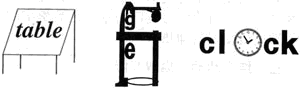 小学阶段学生的思维以直观、形象为主,枯燥、抽象的英语单词常常让学生产生厌恶心理。若能将形象的图画与抽象的单词联系起来,记忆单词就容易多了。于是,在设计作业时,我便尝试让学生根据所学单词自行设计图画。如,在教学table、fridge、clock等比较难记忆的单词时,我便布置学生根据自己的喜好设计制作图文并茂的单词卡。第二天,交上来的作业五彩缤纷、各式各样完全出乎我的意料。不信,请看图: