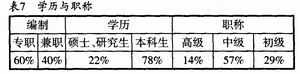 表7显示,绝大部分教师为本历,占78%;研究生学历占22%。高级职称者仅为14%,大部分为中级职称,占57%。近年来,虽然各个学校加大了师资队伍建设的力度,从各地各行业引进了一批高学历高职称且各方面都比较优秀的人员充实教师队伍,但仍跟不上高职高专教育发展规模与速度。民办高校之间外语师资相差较为悬殊。接受调查的民办高校中,37%的学校英语教师缺编率达90%1)2上,只有12%的学校英语专职教师达77%。