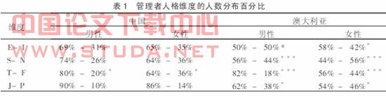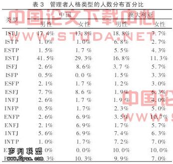 3.3 中国、澳大利亚管理者人格类型的性别差异