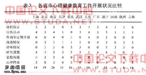 从地域上看,各地区的中小学心理健康教育的普及情况各有不同,评价标准也因地而异。中小学健康教育工作开展得比较好的地区都分布在省会城市和东部沿海地区,在城镇等西部偏远地区,心理健康教育工作开展的极为缓慢。