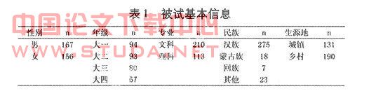 采用随机分层抽样方法,从长春市东北师范大学按照年级、专业、民族、生源地随机选取370名学生作为被试。样本基本情况详见表1。