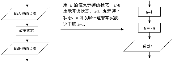 师:对。我们在思考复杂问题时,首先可以把这个复杂问题简化到不能再简化的地步为止,然后看看最简单的状态我们能不能解决。好,下面就请同学们画出一个学生改变一把锁状态的流程图。