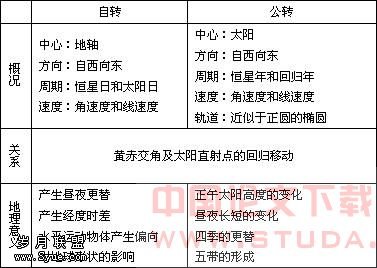地球运动的方向、周期、速度等基本规律在初高中均有介绍,但初中部分内容比较浅显,侧重说明地球运动的平均状态。高中部分表述则更显严谨,并注意说明地球运动的变化(如:因参照物不同而出现的自转、公转周期的变化;因纬度不同而产生的自转速度的变化;因日地距离变化而产生的公转速度的变化等)。