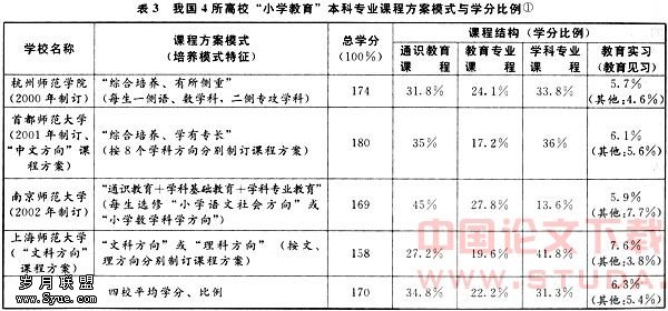 关键词:小学教育本科专业;课程方案;培养模式;比较研究