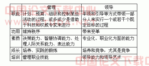第二种认为,管理是一个比领导范畴大的概念,管理有四种职责,即计划、组织、领导、控制。领导是其中的一个重要组成部分,领导是管理中的一种职能或功能。这是管理学界比较成熟的观点,也是占支配地位的观点。