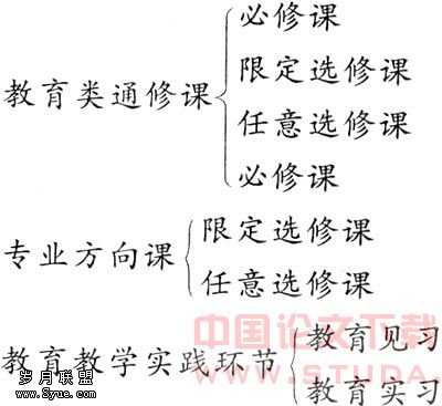 3+1模式中教师教育模块课程要能充分满足教师内在专业结构的要求,能最大限度地保证教师专业培养水平并为教师自身专业可持续发展打下良好的基础。课程的选择和设计还要考虑以下几个因素:1.要全面反映基础教育特别是高中教育课程改革对教师的要求;2.要适应和满足教师专业和教师生涯可持续发展的需求;3.有一个合理的教师专业发展必须具备的知识、技能、技术、态度、情感和行为体系;4.要适应学分制管理背景下学生选课的需求,因此要有足够的课程门数。课程分必修课、限定选修课和任意选修课。我们在考虑教师教育模块课程的结构时,以教师的专业发展和教师的工作实践需求为导向,而不是以教育本身的系统性和完整性为导向,充分考虑不同性质的课程在教师专业结构培养中的功能以及在每一课程模块中的分布。