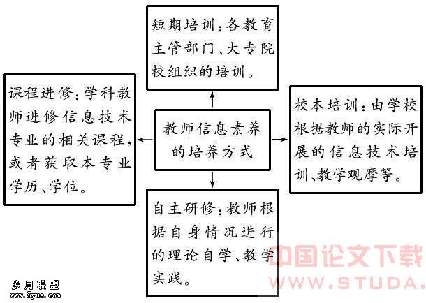 教师信息素养培养主要包括职前培养与在职培训两种。教师信息素养的在职培养途径十分重要。笔者认为,信息素养培养的方式可以参照图2进行。
