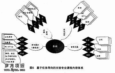 以任务为导向的课程改革适用于专业主干课程的改革和实训内容的设计。所谓专业主干课程是指代表本专业最基本特征的核心课程,可以用拓扑学中的“特征不变量”表示。这类课程紧扣专业培养目标的主旨,是实现专业培养目标的基本保证,因此具有十分重要的意义。 以任务为导向的课程改革的前提是对本专业所涉及的核心能力进行分解。参考加拿大CBE课程开发的经验,成立有业界和学校专家共同组成的课程开发委员会,主要对涉及本专业必需的核心能力进行分析,建构职责——任务表。在此基础上,以任务为核心分解出若干项目,围绕每个项目,分析其必需的工作职责要求,对于每一项工作职责要求,又可以分析出它所需的支撑知识,进而有效地实施课程的教学(见图5)。 图5所示,圆代表一项任务,椭圆代表以任务为核心分解出的若干项目,菱形代表围绕每个项目分析出的工作职责要求,流程框代表所需的支撑知识。以此可以清晰地显示出以任务为导向课程模式的基本思路。 在具体实施中,遵循人的认知特点,以实践、认识、再实践、再认识的方式进行。流程框代表所需的支撑知识,可以由教师根据菱形代表的工作职责要求进行遴选,使其具有学科体系的相对不完整性和满足工作职责要求的完整性。围绕圆代表的中心任务,结合重新组合了的流程框知识内容,学生可分组轮流进行以椭圆代表的若干项目为内容的实训,通过循环交流,使学生全部完成了实现核心任务所必需的各个项目,借以全面运用了相关的知识,达到了能力锻炼和提高的作用。因为学生分组轮换每一个项目,所以成绩考核就有了特定的评判方式。理论课考核以对知识的理解为主,采取开放式考题,占较小的比例。完成项目的成绩由学生之间评价和教师评价结合进行,占较大比例。有条件的课程还可以与相关的职业资格证书取证联系起来。这样的评价是开放的,既有利于学生找出不足,也有利于学生之间相互学习。因为成绩评定由理论考核转变为能力评价,由教师主导变为师生共评,由绝对测量转变为相对比较,所以更为客观地测量出学生能力的实际水平和完成实际任务中的缺陷。 基于任务导向的高职课程模式是对传统学科式教学模式下课程教学的重大改革,具有以下几方面的明显特点: ——服务职业要求贴切。因为一切活动都围绕着核心任务展开,而核心任务又是通过职业分析的方法得出的,所以各工作项目和工作职责都来源于真实的实际工作,学生的训练切实满足了实际工作岗位的需要。 ——工作能力培养真实。因为整个活动属于彼时发生的真实事件,所以一切教学都在真实的氛围中进行,其能力的提高摆脱了纯粹的课堂痕迹。 ——教学内容的相对不完整性与满足职业岗位要求的完整性有机结合。依据职业的特点,基于任务导向的课程模式在充分满足职业职责要 求的前提下,改革理论教学和实践教学的内容,使之服务于岗位职责的要求,因此体现了理论知识“够用为度”的原则。 ——考核方法的改革使得对学生的评价更加贴近学生的实际和岗位要求的实际。因为突破了传统的单一闭卷笔试模式,所以这样的考核更适用于能力测量的客观评价。 ——学生的合作、处世能力得到锻炼。在实际工作中不可能单枪匹马地工作,必须具有团队精神。但传统教育中学生听课、实验、几乎都是独立完成,缺乏合作精神的培养。而基于任务导向的课程模式把学习的目标放在了共同完成任务上,因此可以达到培养学生合作精神的目的。 ——教师的“双师”素质培养要求提高。要完成如此贴近真实工作的教学,就要求教师必须具备丰富的实际工作经验,这对于高职师资队伍建设的“双师”素质要求具有极大的促进作用。 应当看到,以现有高职院校的情况看,要实现基于任务导向的课程模式,还存在一定的制约因素。一是教师的思想认识问题。并不是所有的教师都能充分理解和认识到职业教育的属性和特征,因此需要不断地进行思想观念的变革。二是支撑条件必须允许。从事实际任务需要真实的工作环境,而投入的设备、耗材等对学校都是一定的负担。三是任务分解的性。因为它具有引导这个教学的导向性,因此任务分解的是否科学至关重要。四是适应这样的教学要求的教师队伍,成为制约模式运行的一个突出问题。 三、基于任务导向构建应用文科类课程内容体系的方法 根据上述原则,工科类和管理类专业课程由于任务明确,相对比较容易完成,而文科类相对较难。为此,特以文秘专业为实例,分析应用上述模式的过程。见图6和表1。