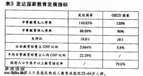 OECD教育发展指标体系在实践中一般以“教育经费占GDP(GNP)的比例”或“人均公共教育经费”等具体数据,建议将其设计为“职业教育投入指数”。
