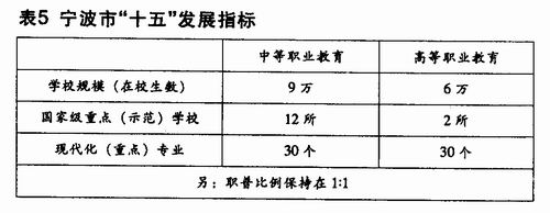 宁波市人民政府《关于加快职业教育改革和发展的若干意见》中,明确了宁波市“十五”期间职业教育的发展目标: