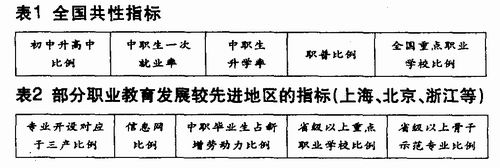 以宁波市为例,宁波市《关于加快职业教育改革和发展的若干意见》提出了“基本实现‘校校通’,全面进行信息技术教育,2005年前信息网比例达到 95%以上”等几项富有建设意义的指标,这些指标可成为职业教育的发展指数。