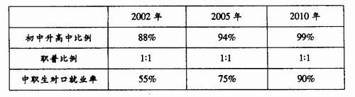 在2010年前实现12年义务教育,职普比例保持在1∶1,并进一步提高中职生对口就业率。