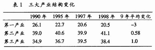 随着知识经济时代到来,社会主义现代化建设的逐步深入,经济开始由粗放型向集约型转化,产业结构、技术结构和劳动力资源配置结构发生了重大变化,教育的重心也将呈现逐步上移趋势,从而为高等职业教育的进一步发展展现更广阔的需求前景。综合现有资料统计分析,陕西省第一产业将以年均1.0%的速度呈上升趋势<见表1)。由此可以预言,陕西省劳动力将更多地向第三产业转移,第一产业更多地采用新技术并解放出大量剩余劳动力;第二产业中,高文化素质的劳动力比重迅速提高,第三产业逐渐增加智力密集型经济和高素质劳动力的比重。