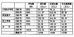 20世纪80年代前期是我国高等职业教育的萌芽时期.期间随着各行各业建设事业全面展开,市场经济(商品经济)得到发展,国家出台了发展高等职业教育的政策,职业大学呈现出较快的发展势头,到1985年,全国先后创办了128所职业大学,高等职业教育初具规模。但在此后的80年代后期和90年代初期,高等职业教育并没有保持持续发展,原因是多方面的,有国家高等教育政策调整的原因,有国家形势变化的原因,但最根本的还是高等职业教育发展所要求的基本条件并不十分充分,1996年全国职敦会召开以后.高等职业教育的发展再次呈现出良好的势头.且由于国家经济发展水平大幅度提高,经济体制做出了重大调整,市场经济迅速发展,经济和产业结构进一步优化,经济生产和社会服务对从业人员的知识和技能要求越采越高,高等职业教育的发展有了更适宜的社会环境.以广东省为例,到工997年,中心城市举办的高职院校建筑面积达到 160多万平方米,占全省高校建筑面积的22.7%:教学科研仪器设备固定资产总额为2.4亿多元,占全省高校教学科研仪器设备固定资产总额的23.5%,在校生约4.6万人.占全省普通高校在校生总数的28%.