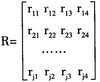4.评价矩阵R。从U到V的模糊关系,用模糊评价矩阵R表示: