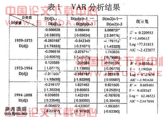 本文采用向量自回归模型进行分析,VAR模型采用多方程联立的形式,估计全部内生变量的动态关系,是货币学领域的主流方法,并已被广泛的使用到此类问题的研究之中.