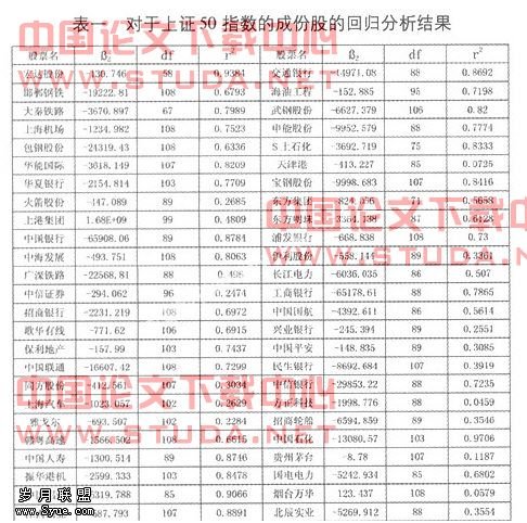 本文利用EXCEL对上证50指数的成份股的散点图进行回归拟合,得到的结果说明了通过所选取的简单线性回归模型,能够明显得出成份股的股价与散户量之间的变动关系,该模型虽然不能得到变量间相关程度的精确数值,但总体上可以反映变量间的相关度,而且对股票间横向比较的影响可以忽略不计。部分回归结果见表一。