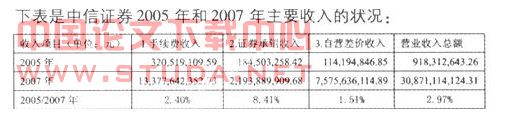 下表是中信证券2005年和2007年主要收入的状况:
