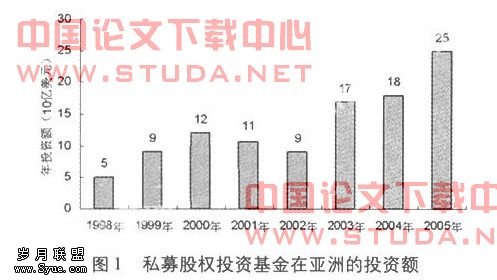国际私募股权基金蓬勃发展,呈现出资金规模庞大、投资方式灵活等趋势,在并购活动中发挥着越来越重要的作用。亚洲私募股权市场作为全球市场的重要组成部分也在快速发展当中,投资规模由1998年的50亿美元增加到2005年的250亿美元。据清科研究中心调研报告显示,中国已成为亚洲最活跃的私募股权投资市场。