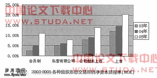 在改善收入结构的同时,上市交易所的盈利能力也得到不断提高。2006,上市交易所净资产回报率(ROE)平均高达29.1%,高于行业平均22.7%的水平,会员制接近15%,公司制未上市交易所和05年基本持平,为14%左右。