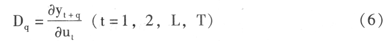 (7)式中Ψ的第i列第j列元素表示第i个变量对第j个变量的结构冲击累计响应。另外,对(4)式求解,需要施加约束条件,因此(4)式可以变换为: