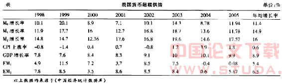 中国经济经过多年的宏观调控,逐步摆脱了通货紧缩的态势,出现了市场流动性供给大于需求的现象,特别是2005 年以来,市场流动性过剩问题日趋突出。根据粗略统计,2004年为1 0711亿元,2005年为9 939亿元,2006年为19 225亿元。2005年第一季度末总体流动性同比减少8.4%,但2006年第一季度末却同比增加了9 286亿,增加幅度高达93.4%。为应对亚洲金融危机,人民银行采取一系列宽松的货币政策,但效果不尽如人意,出现了“宽松货币政策下的通货紧缩”,造成货币的长期超额供给。1998—2005年间,我国货币供给增长率远远大于经济增长率与物价上涨率之和(详见表)。1998—2005年均EM1与EM2分别高达5.4和6.5。2006年上半年货币供应量M1和M2同比分别增长15.30%、18.43%,比去年同期分别上升4.30和2.76个百分点,但GDP增长率为10.9%,比2005年同期9.9%,仅有微弱增长,居民消费价格指数CPI同比也仅上涨2.2%,货币超额供给的态势依然严重。