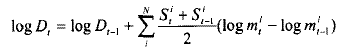 该指数是由巴内特(Barnett,1980)将微观总量理论、统计指数理论与货币理论结合起来,通过解消费者最优选择问题而导出的。该指数以货币资产的机会成本来建立权数加总各种货币资产。持有货币资产的机会成本,也叫“使用者成本”(usercost)。持有每一种货币资产的开支(该种货币资产总量×使用者成本)占持有全部货币资产的总开支的比重,就是该种货币资产在货币总量中的权重。显然,如果某项货币资产的流动性强,则收益率低,与基准利率的差值大,在货币总量中的相对权重就增加。在离散时间情况下,Divisi货币数量指数可表示为: