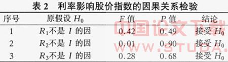 从以上分析可以看出,在样本期间,利率的调整已经对股价指数产生了相对较大的负向影响,但同时我国的利率变动又不是股价指数变化的原因,表明我国的利率调整已经初步具备了影响股价指数的能力,但由于我国股市股权结构不合理、政策市特征明显及投机性太重等原因,股价指数对利率的变动还不是很敏感[17]。