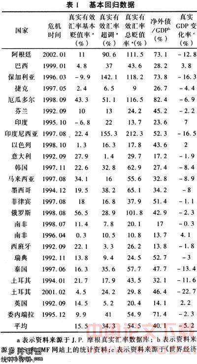 符合上述条件的货币危机我们共找到了24次,有关这些国家及其相关的数据见表1。