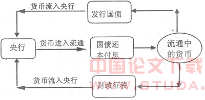 从表面上看,国债的发行和偿还与央票差不多,都是发行时货币供给减少,偿还时货币供给增加,但是,它们对货币流通的影响却有很大的不同。国债的发行偿还基本可以保持货币流通的稳定,央票如此操作则最终会造成货币供给的过多。如图1所示,央行替财政发行国债,货币进入央行,流通中货币减少。到了还本付息之时,货币再度进入流通,但是,这货币基本来自公众税款。所以,还本付息进入流通的货币来自缴纳税款退出流通的货币,国债的发行和偿还因此基本保持货币供给的平衡,至少增量部分相当有限。
