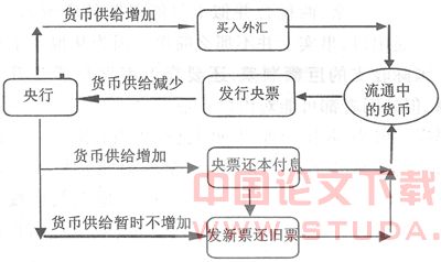 央票的发行偿还则会造成货币供给的增加,如图2所示,央行先发行人民币收购外汇,再发行央票,收回人民币。到还本付息时,央行要么投放人民币,货币供给增加;要么发新票还旧票,货币供给不增加,但央票发行增加,增加的央票最终还要还本付息,届时货币供给还是要增加。需要指出的是,越是发新票换旧票,央票的累积越多,这就越会造成将来的“高峡出平湖”,低水位上泄洪容易,高水位上这么做难度要大得多,将来在解决巨额央票时要付出很大的代价。显然,国债还本付息用的是流通中的货币,而央票的还本付息则以新发行的货币,国债发行偿还不会造成货币供给过多的压力,央票则一定有这样的效果,所以央票发行不具有可持续性。只要外汇顺差问题不解决,央票的增长终究会使我国和货币流通陷入尴尬之中。