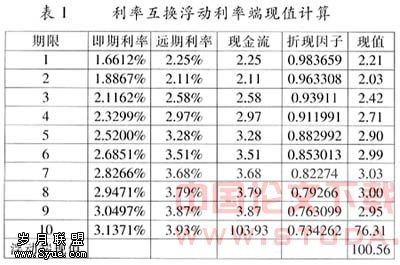 按照本文介绍的方法,求得浮动端现值,见表1,令固定利率端现值与之相等,计算得出互换的固定利率为3.14。