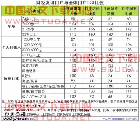 [摘要]:作为财经信息市场重要组成部分的——财经网站/频道,在2006年以来的资本市场的大牛市中异军突起,也获得了空前繁荣与。本文以艾瑞网站检测数据为依托,对于财经网站/频道在2006/5—2008/5月之间的发展脉络进行梳理的基础上,从内容以及产品服务提供、赢利模式、技术等三个方面对其中的有代表性的网站进行深入剖析。真正以“用户为王”,通过先进网络技术整合资源,培养摆脱牛熊市思维的理性受众,并对用户进行精耕细作的营销模式、培养网站品牌,财经网站或将会迎来持久的明天。