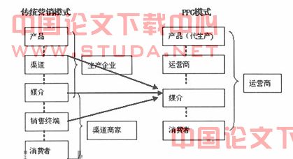 在这一系列的营销过程中,关键的控制人只有一个,那就是运营商。运营商掌控了一切从生产产品到直接面对消费者的环节,具有唯一性的话语权力,从而解决了传统的厂家与商家之间的矛盾和博弈。我们从传统营销模式与PPG模式的比较图中就可以看出这一点(见示意图1)