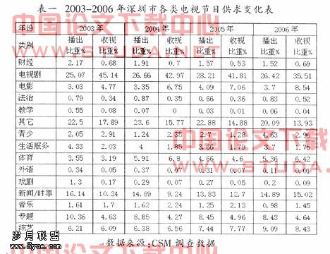 表一显示的是2003至2006年深圳市各类节目播出和收视比重的变化情况。从表中可以发现,电视剧近几年在持续降温,如果收视增长模式过多依赖电视剧,抗风险能力就会越来越脆弱。2005年,深圳本土电视剧收视所占的比重仍然高达45.02%,高于北京市的36.0%、上海市的39.4%、湖南省的40.0%(均为年平均数据)。为提高可持续发展能力,深圳本土电视必须寻找新的突破点和发展的支撑点。