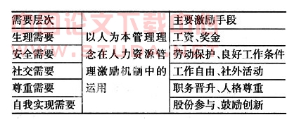 激励是调动员工积极性,激发员工创新意识的最有效方式之一。企业建立有效的用人激励机制,可以发挥人力资源管理的最大优势。按照马斯洛的需要层次理论,人有生理、安全、社交、尊重、自我实现需要,因此,根据人的需要层次不同对人的激励机制也要具有多样性,包括工资、奖金、津贴、职位晋升、改善环境、工作自由等,以满足不同层次人的不同需要,充分落实以人为本管理理念的激励机制。具体的需要层次在人力资源管理中的运用对应于以下几种激励:
