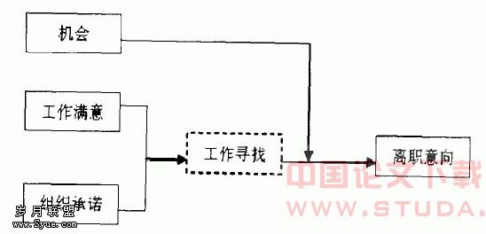 张勉等依据Price离职意向模型提出简化模型。Price离职意向模型包含了三类外生变量和四类内生变量。三类外生变量为环境变量、个体心理变量和结构变量,其中机会是非常重要的环境变量;内生变量为工作满意、组织承诺、工作寻找和离职意向。心理变量和结构变量通过工作满意和组织承诺影响离职意向。简化模型省略了心理变量和结构变量。