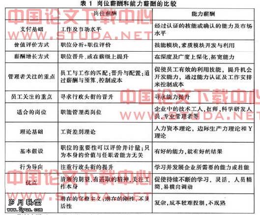 上述对岗位工资制和能力薪酬的介绍,用表1表示。