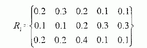 设因素集U={U1,U2,…,Un},评价集V={V1,V2,…,Vm}。设第i个因素Ui的单因素评价为Ri={ri1,ri2,…,rim},它是V上的模糊子集,其中,rij表示第i个因素的评价对于第j个登记Vj的隶属度。从而构成一级评价矩阵R,它是U到V的模糊关系矩阵
