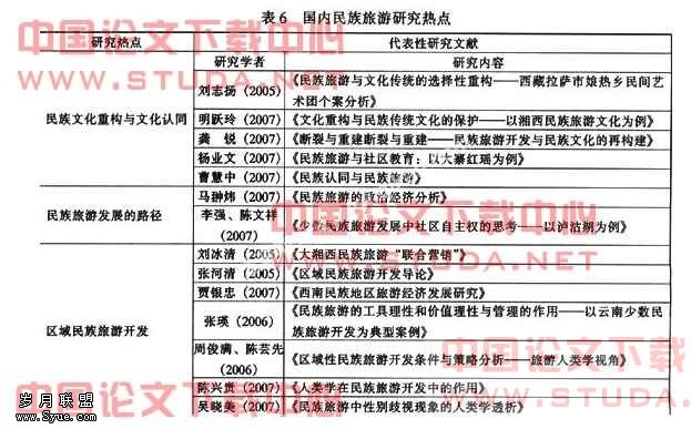 陆军,潘善环从民族学角度提出民族旅游资源的调查研究方法[18];周俊满、陈芸先运用旅游人类学分析区域性民族旅游开发的条件与策略[19];郭颖利用文化人类学研究了少数民族地区旅游资源的保护与开发等[20]。