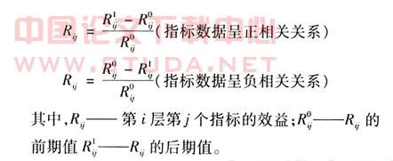 因为在指标体系中,所包含的各个指标往往具有不同计量单位,即不同的评价指标具有不同的量纲和量纲单位,为了消除量纲与量纲单位的影响,在构建综合指数时,应将不同单位表示的指标进行转换,即无量纲化处理。依据本文研究内容,考虑到是动态的效益变化,为了得到统一量纲,用其增长率或减少率作为其效益值。