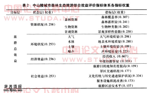 城市森林生态旅游处于各个学科的交叉地带,所以城市森林生态旅游效益是一个综合性的目标指标,涉及的学科多,体现的方式多,包括了生态、经济、社会的各个方面。根据系统论的基本原理和研究区域的实际状况,通过分解、归纳与综合,明确各类指标的地位和作用。中山陵风景区城市森林生态旅游效益的评价标准与指标体系由三个层次构成,其中第一层为目标层,第二层为状态层,第三层为指标层。?