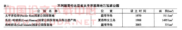 关键词:加拿大;太平洋滨海地区 国家公园保留地;;滨海型景区
