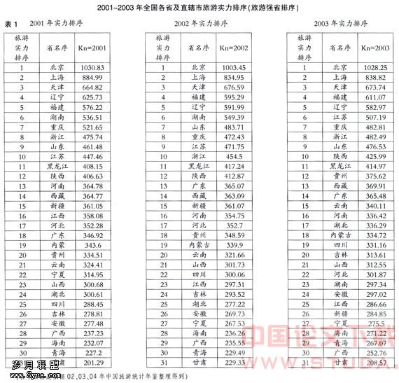 2.旅游实力的横向比较(表1)