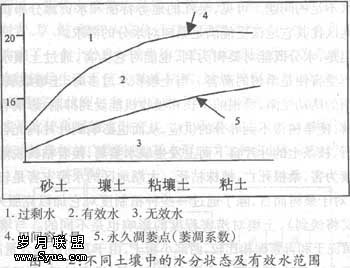 土壤对桑根的供水能力因其土属的不同而各异。一般来说,桑树的适当含水量为田问容水量的60—80%,其中砂土为60—70%,壤土为70—80%,粘土为80%。(见图1—2)因此,就桑根吸水能力而言,与壤土和粘土相比较,砂土的田问容水量要求较低,即桑根更容易从砂土中吸收水分。也就是说,从桑树对水分的需求来看,土质接近于沙土的小粉土,比属于重壤质地的黄泥土和粘重质地的青紫泥能更大范围地适合于栽桑。小粉土较易满足桑根对土壤的吸水要求,这也是吴江桑树集中于太湖沿岸地区的原因之一。